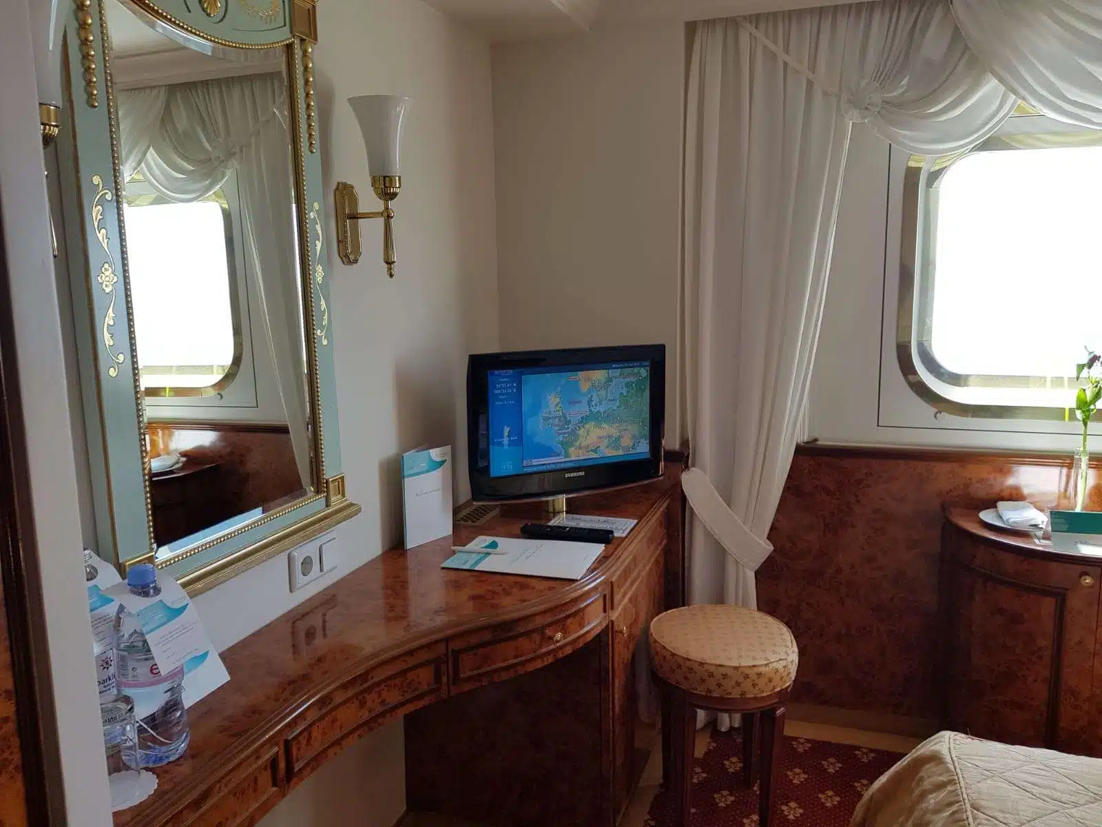 Beginnend mit dem check in, der Begleitung zur Kabine und dem beantworten wichtig erscheinende Fragen. Wobei die Fragen “ wo bleibt mein Koffer?“ sich erübrigt, denn dieser war schon da.