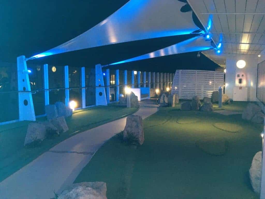 Für die kleinen Passagiere ist an Bord natürlich auch gesorgt. Eltern können ihre Kinder in einem der Kinder-Clubs abgeben und beispielsweise einen Tag im Spa genießen. Es gibt den Mini Club für Babys und Kleinkinder, den Kids Club (3-11 Jahre) und den Wave Club (12-17 Jahre). Die Betreuung kostet einen Aufpreis und muss vorher angemeldet werden. Die Kapazitäten sind begrenzt. Aber am liebsten beschäftigt man sich ja doch mit dem eigenen Nachwuchs. Dafür stehen das Game Center, das Four Elements mit Rutschen, Kids Pool, Spielplatz und Tischtennisplatte zur Verfügung. Ein weiterer Spaß (auch für die Großen) ist die Minigolfanlage auf dem Außendeck von Deck 8. Natürlich dürfen auch Dart und Shuffleboard nicht fehlen.