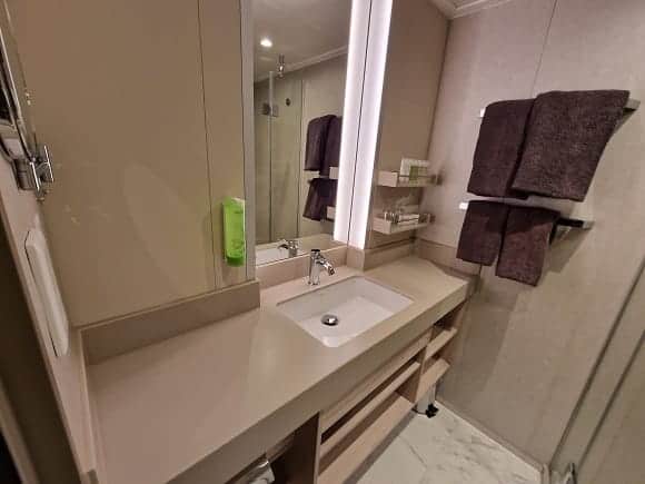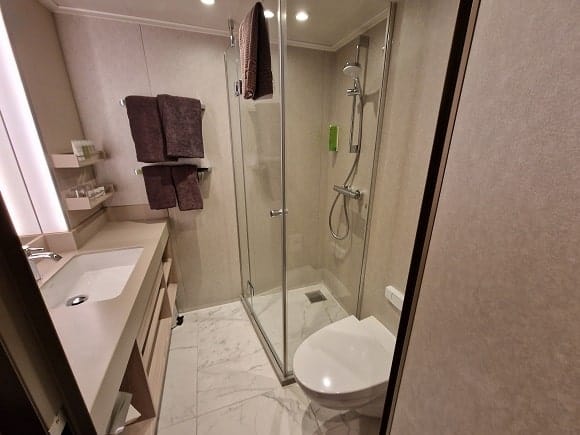 Auch hier klappt es relativ reibungslos. Ich kann man durchaus gelungene Kabine auf Deck 2 beziehen. Eine aus meiner sich sehr komfortable Kabine mit allem, was man so braucht.