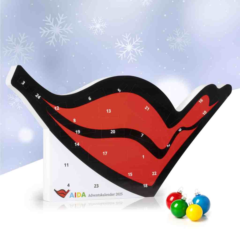 AIDA hingegen zieht 2025 wieder alle Register. Der ikonische AIDA-Kussmund-Adventskalender ist: